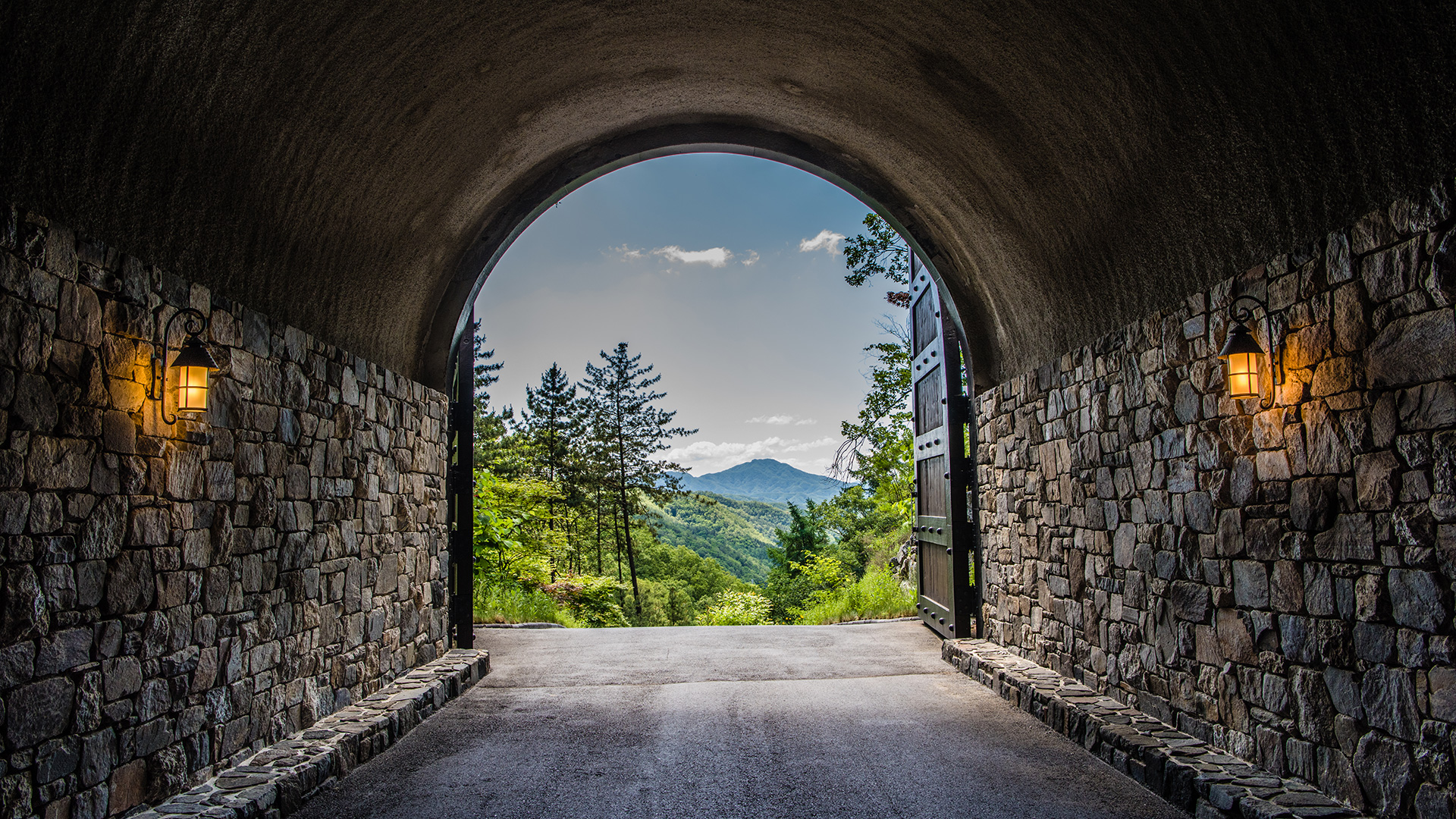 Gumhak Mt. (655m) welcomes you to 'the Glen' from about 10.7 km away, outside the Cloud eco tunnel doors (about 260m).